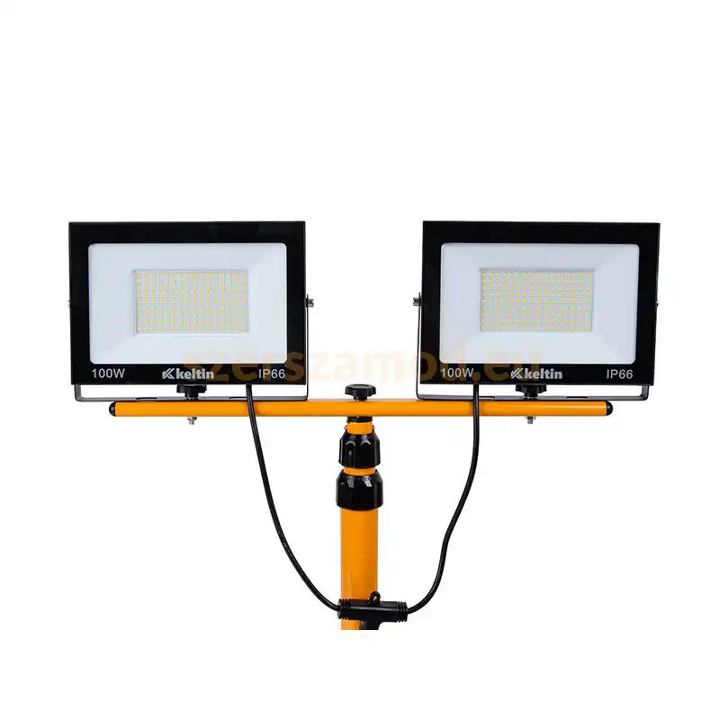 A KELTIN 100 W-os reflektor dupla állvánnyal erős, hidegfehér fényt biztosít munkaterületek megvilágításához. A LED reflektor ideális építkezésekhez, műhelyekhez és kültéri felhasználásra.