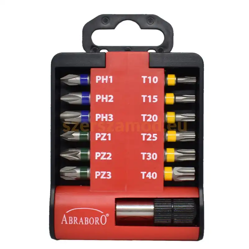 – **Készlet tartalma:** 13 különböző méretű bit, amelyek könnyen cserélhetők és tárolhatók.