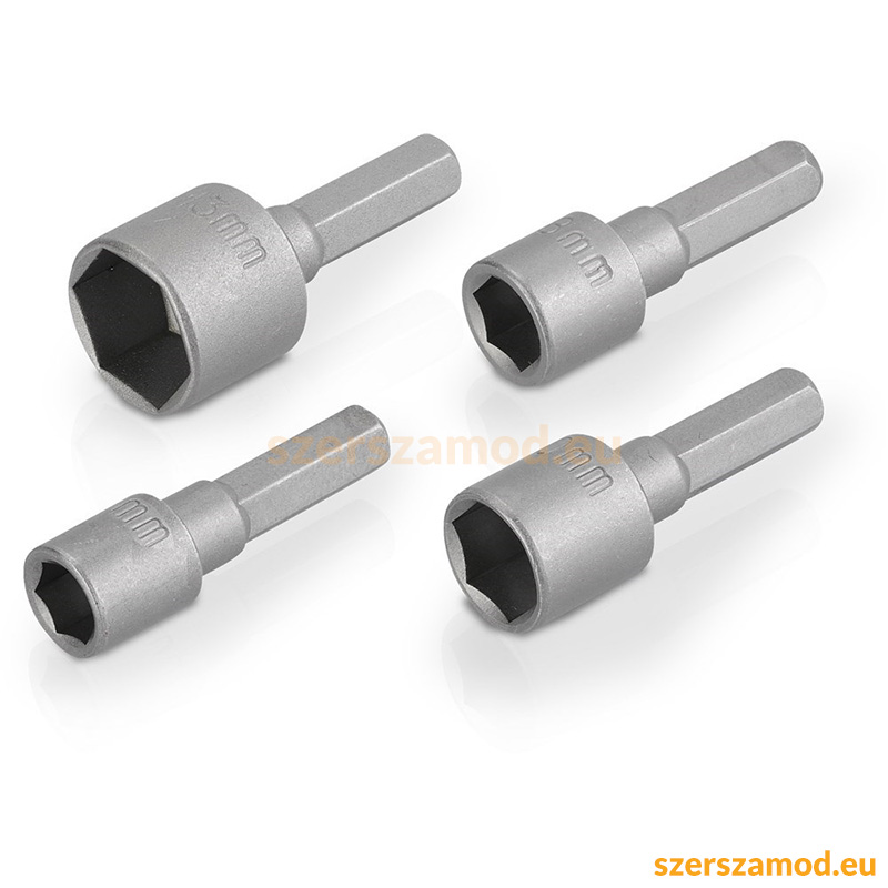 Termékek/Szerszámgép tartozékok/Csavarozás/Bitek és bitkészletek/4db-os bit befogású dugókulcs készlet mágneses 65mm (6,8,10,13mm)