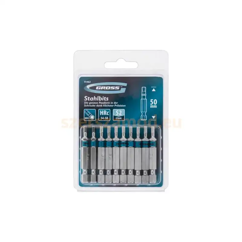 A GROSS HEX 3 méretű behajtóhegy készlet 50 mm hosszúságú bitekkel ideális imbus csavarok meghajtására. A tartós acélból készült behajtóhegy pontos illeszkedést biztosít a csavarfejben, így csökkenti a csavarfej sérülésének esélyét. A behajtóhegy jól használható műhelymunkákhoz, szerelési feladatokhoz és barkácsoláshoz.