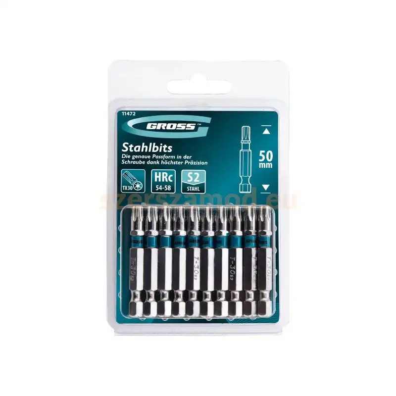 A GROSS TORX T30 behajtóhegy készlet 50 mm hosszúságú biteket tartalmaz. A behajtóhegy kiváló választás torx csavarok meghajtásához, ahol fontos a stabil és pontos illeszkedés. A tartós acélból készült behajtóhegy ellenáll a kopásnak és hosszú élettartamot biztosít rendszeres használat mellett is.
