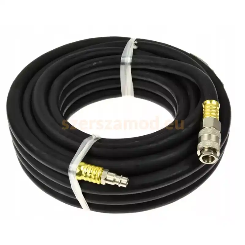 A gumis anyag biztosítja a rugalmasságot és a tartósságot, így a tömlő ellenáll a különböző környezeti hatásoknak és mechanikai igénybevételnek. A tömlő könnyen kezelhető, és a kompresszorhoz való csatlakoztatása egyszerű, így ideális választás mind a professzionális, mind a hobbi felhasználók számára.