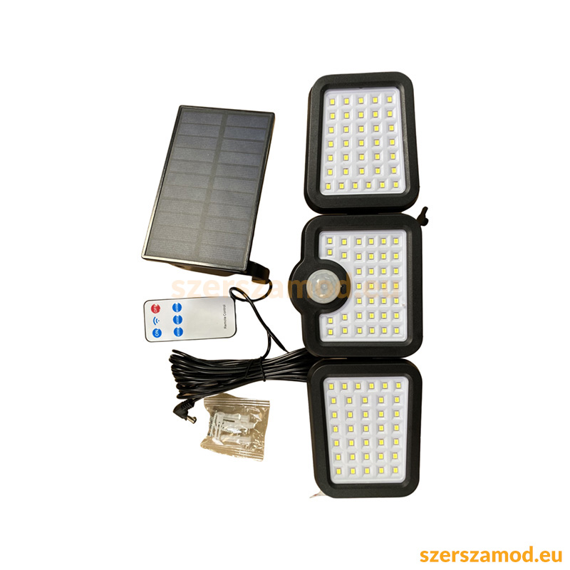 LED lámpa mozgásérzékelővel, külön napelemmel + távirányító