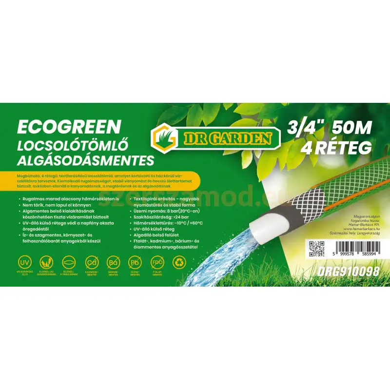 Locsolótömlő Algásodásmentes 4 Réteg 3/4 50m Ecogreen Plus